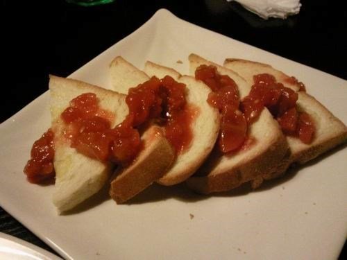 面包选了番茄面包,这个真失败,早知道就要蒜蓉的了,就是面包片上放了些西红柿酱,真的不好吃~~~