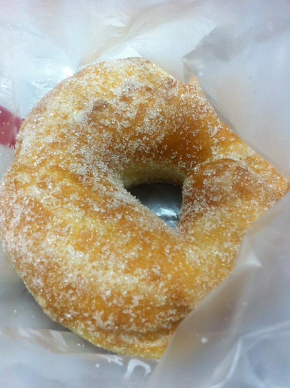 上班同事给我们带的,85度的甜甜圈,85度之前我们都是在吉庆街这家店买的,大洋店是后来10月左右开的,,生意也还不错,我很喜欢他们家的蛋糕面包,还有饮品 虽然价格比皇冠的都要贵,但是好吃最重要,这次的甜甜圈我是第一吃,看第一眼的时候,觉得就像学校门口卖的那个油炸面包,,上面撒了一点糖,后来吃到口里的时候才发觉一点都不像,么有油炸的哪种油腻,没有油粉,圈圈软软的,,很香,很脆,外面上撒了一层薄薄的糖,,很甜很好吃,,··而且听同事说价格不贵,,,