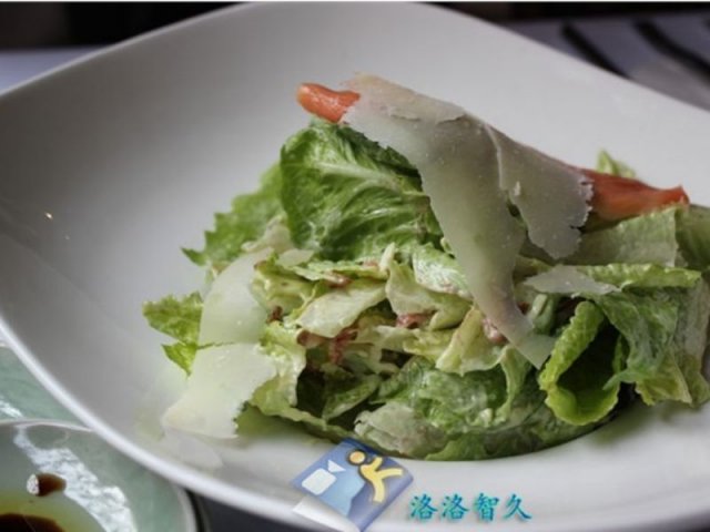凯撒色拉:生菜有些老,吃口一般~配有烟熏三文鱼2片,还有半颗糖心蛋搭配着一些cheese片~