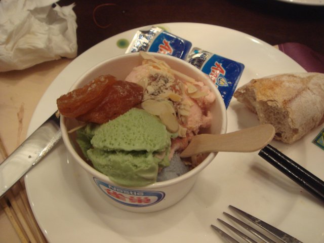 冰激淋是雀巢的,可以炒着吃,只是葡萄干太硬了,我这么好的牙口也甘拜下风了。