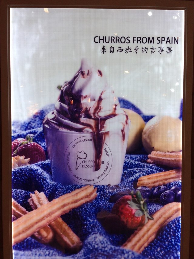吉事果这个名字真的是第一次听到,哪个来给我普及啊。所以我相当好奇的想去试一试这家西甜的东东,吉事果。长长的,有点那种粗粗的薯条感觉。但是肯定是那种有点感觉硬的感觉,用吉事果沾上自己选择喜欢的冰淇淋。这个冰淇淋是可以选择口味的,有原味的,蓝莓的,巧克力的。自己可以选择自己喜欢的口味,个人觉得他们家冰淇淋味道还是可以的,当然也可以不沾冰淇淋吃的。我个人觉得冰淇淋的果酱稍微甜了,我喜欢沾少点的冰淇淋吃的。当然也算是甜品动物应该来尝试的东东吧。