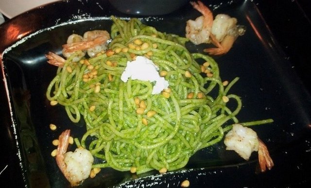 蛮喜欢的,虽然味道不重,但算是很清口的意面~而且颜色很讨喜,清爽的绿色!本来应该是管面的,但是君君不喜欢管面,服务生主动提出可以做成细面的那种,其实罗勒酱汁考拉也是比较喜欢用细面做,换了意面品种也是极佳的,推荐!