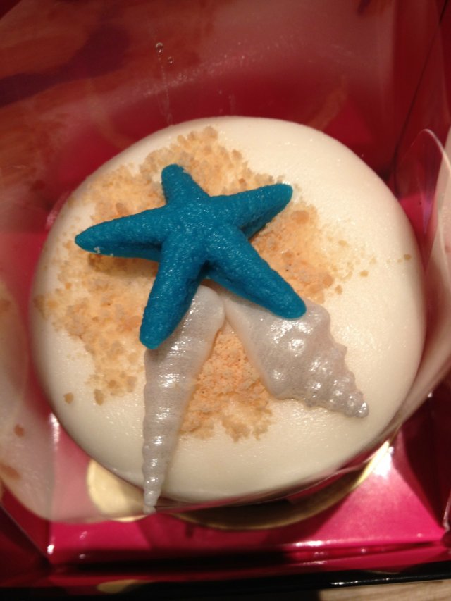 这家店在淮海中路上的力宝广场的地下1层,地方很好找,电梯下去就能看到他们家很大的招牌。店面布置很漂亮,白色为主,基本没什么人,服务员挺热情的。他们家主营的是翻糖蛋糕,不得不说他们家的蛋糕特别的漂亮,特别是定制的婚礼蛋糕,好看到没话说。老公帮我买了海星的这款蛋糕,很好看,都不忍下口,小小的一个价格也不便宜48元,外面一层翻糖,吃到嘴里不时很甜,软软的,口感不错,馅是芝士馅的,芝士味很浓郁,入口即化,奶味很重,大爱。底部有层薄薄的蛋糕,其余都是芝士,量还是蛮大的。总的来说,他们家的蛋糕,好看又好吃,很值得一试。
