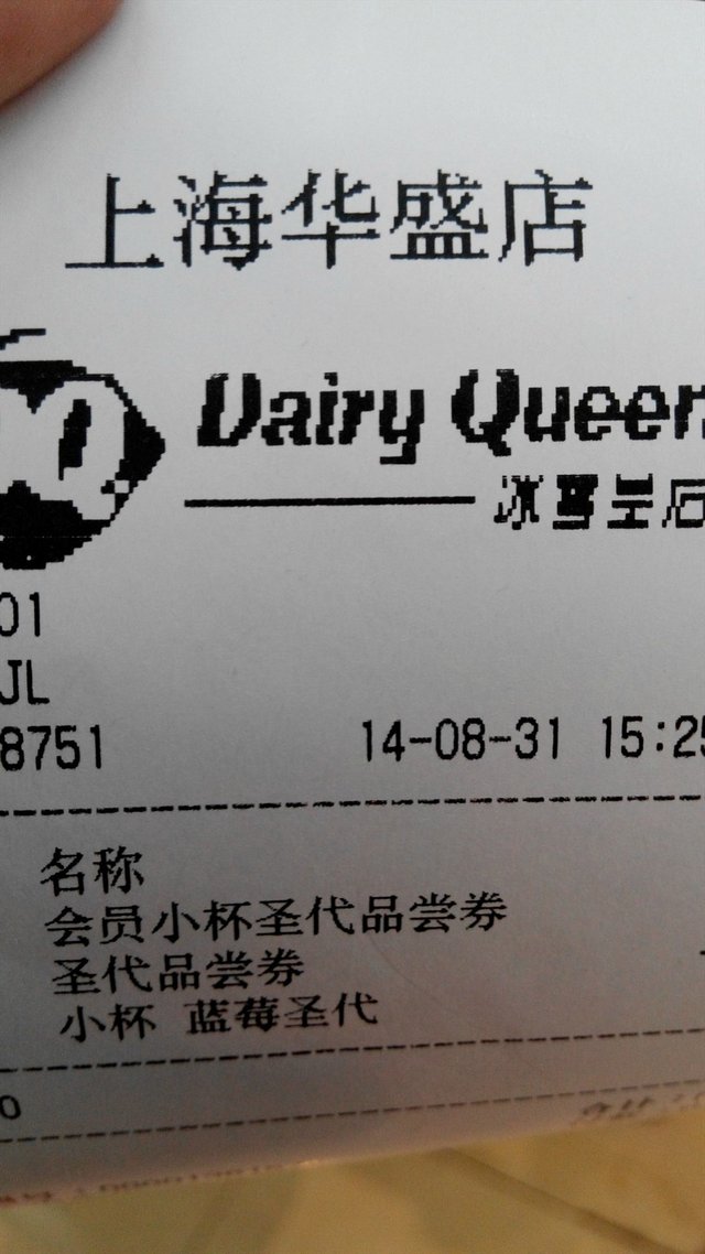 DQ tmymaria等級42014-08-3111 瀏覽 關注 看到朋友说DQ有活动,注册电子会员卡就可以免费吃一个小圣代就马上去弄了 今天路过这家店正好拿了一个吃吃,只要让店员扫下二维码就可以了,我选了蓝莓味的小圣代,原价要12元,价格有点贵,味道一般,感觉蓝莓酱太甜了,冰淇淋的口感蛮好的以上食評乃用戶個人意見 , 並不代表OpenRice之觀點。讚好分享DQ DQ冰雪皇后 https://s.openrice.com/KtbT100E3mC00檢舉 張貼 評分3味道2環境3服務3衛生2抵食用餐途徑外賣自取人均消費¥12 (其他)