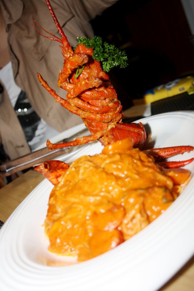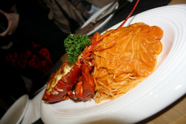 法式龙虾汤,大爱,浓郁的汤底,可以吃到明显的龙虾肉粒,配上一块新鲜的龙虾肉,好鲜美,但是意犹未尽,一点都不过瘾~~继续点龙虾意面饱口福,他们的面偏细很Q弹,和龙虾酱混合在一起真是让人欲罢不能,特别提一下他们的龙虾肉,非常新鲜,壳肉不分离(壳肉分离的一般都是不太新鲜的,给大家参考),入口好有嚼劲,绝对是魔都首屈一指~~