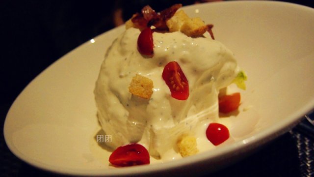 你吃得惯蓝纹芝士的口味,闻得惯蓝纹芝士的味道嘛?如果可以的话你一定会爱上这道色拉的.【球生菜色拉】,这道色拉店家可是拿出了自己的杀手锏,在普通的色拉酱里面调配入了蓝纹芝士这一秘密武器,清爽的球生菜裹上这层浓厚的色拉酱之后入口更是欲罢不能,可谓是爽脆的叶子和浓郁的奶香搭配出的完美的结合体.