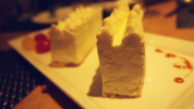 最后团还尝了一块【双重芝士】,可能在看的小伙伴已经震惊了吧,怎么吃那么多还吃芝士呢,就不怕胖吗?嘿,其实不然,还记得刚才的那一杯红酒嘛?红酒加上芝士是可以加速新陈代谢的哦!这可是不少明星的减肥妙招呢.好吧,我承认其实刚才说的都是借口,真实的是团已经垂涎这块芝士蛋糕很久啦!整块蛋糕是用奶油奶酪和帕玛臣芝士一起融合制作而成的,而帕玛臣芝士就是通常我们撒在意面上的那种芝士,这两种芝士在一起颇有双剑合璧的感觉,光浓郁这二字已经不足以形容它的奶香,搭配着红酒一起温润甜美,在口中绽放.