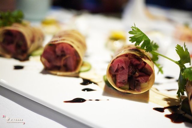 这是道荤素搭配的菜式,一眼看到铺在最底层鲜嫩的芦笋很清新感觉,然后是牛肉、番茄、萝卜丝的层层叠加,有点西式日料的范儿~总体而言,口感清爽,适合夏季。