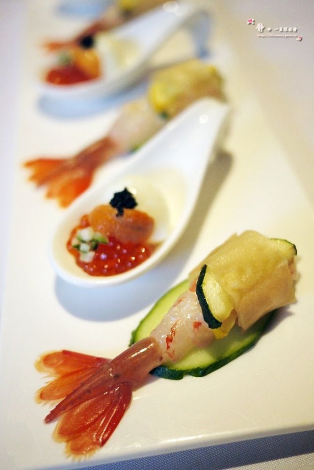 朋友们先到先点了菜,结账时看到菜单就在想这是哪道菜丫,偶想应该是那道牡丹虾海胆刺身吧~牡丹虾去壳后的样子好像美人鱼,平时最简单的刺身拼盘在摆盘和菜名上也花了点小心思,难怪这么多人喜欢来这里求婚姻哪,哈哈~~刺身品质不错,牡丹虾肉质很剔透,入口甘甜香糯。