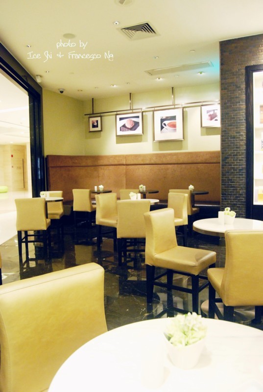 这里还有供客人坐的地方,大概会有些巧克力的饮品吧。我们直奔目的,领了四颗黑巧,他家的包装也是非常精美的,原想着带回家吃的,不过又想到要在现场拍照,就让服务生拿了盘子给我们拍照。既然拿出来了。就吃掉吧。