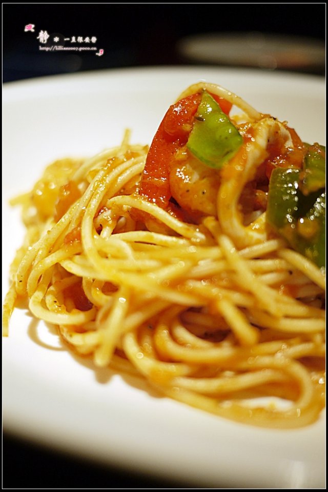 海鲜用料十足,带子、鱿鱼和虾仁,蕃茄Sauce酸甜提味,意面爽滑筋道。