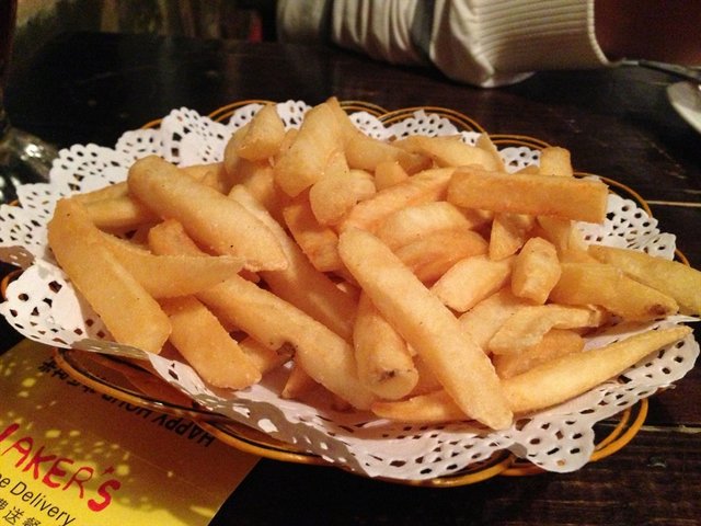 薯条是比较粗的那种,刚炸好的时候很好吃,番茄酱就在桌子上,自己动手拿就行~