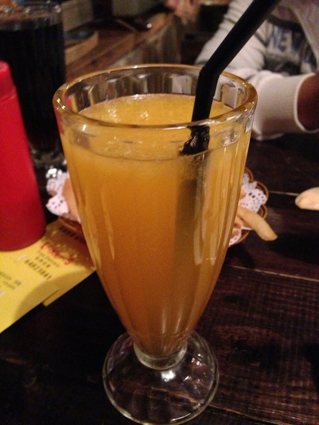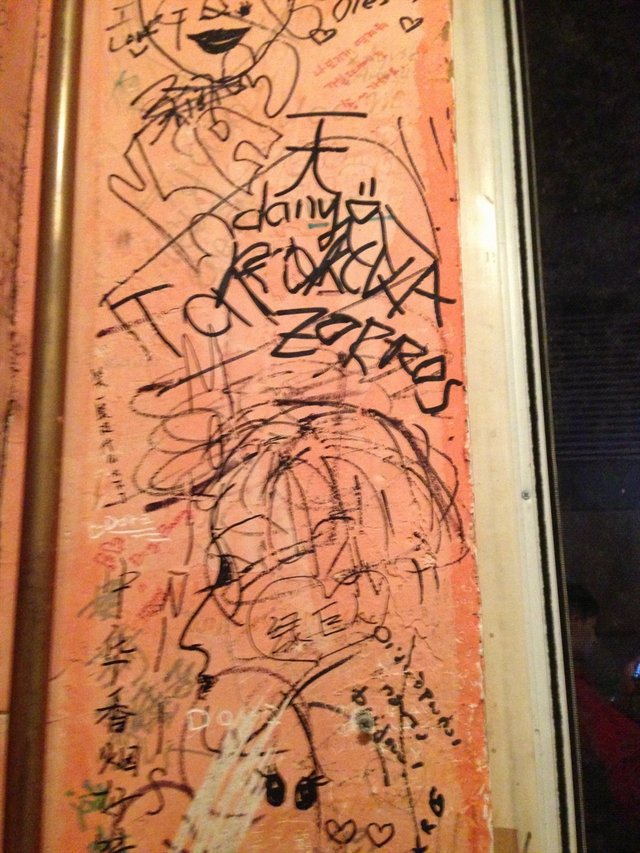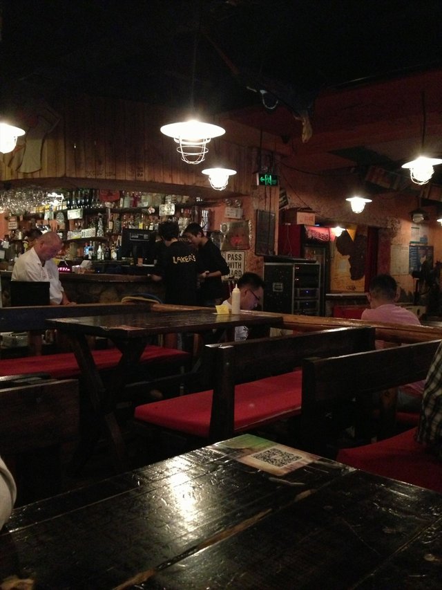 餐厅环境很赞,慵懒的灯光,墙上随意的涂鸦,古老的摆设及挂件,吧台的酒瓶子,窗台的外国书籍,很有外国餐厅的情调~