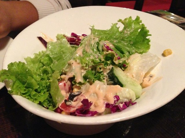 沙拉量给的还挺多的,沙拉酱是单独装在小杯子里的,可以自行斟酌要放多少,我们是全到里了,沙拉味道还不错~