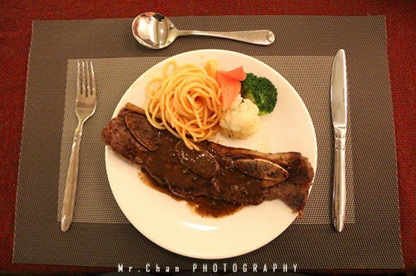 一大块牛仔骨的长度和碟子的直径一样,很好的满足了大口吃肉的欲望。