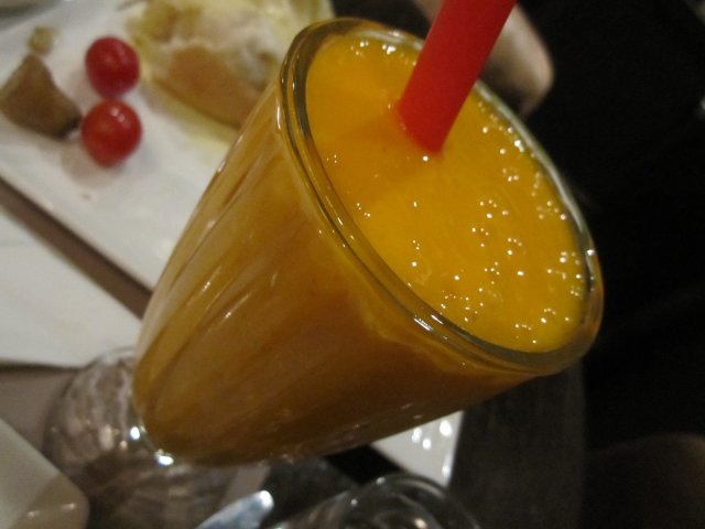 最后还剩下一杯芒果奶昔,从头至尾没上过。因为食物太难吃,我们打算埋单走人了。问了下,说还有没上的,说不上就不要了。不催不来,说不要了,急了,上来了。喝了一口,哇塞,那个味道,很稠,黏黏的,不知道为什么会有一种很恶心的感觉。没办法,38元呢,那么贵,不喝太对不起人民币了,捏着鼻子喝了一半。