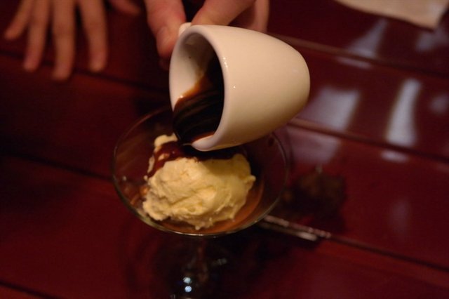 阿芙佳朵 32 这个感觉很不错,把热热的咖啡浇在凉凉的冰淇淋上,冰淇淋采用的是八喜的,甜与苦,热与冷的交汇,不喝咖啡的我也觉得味道竟然很不错
