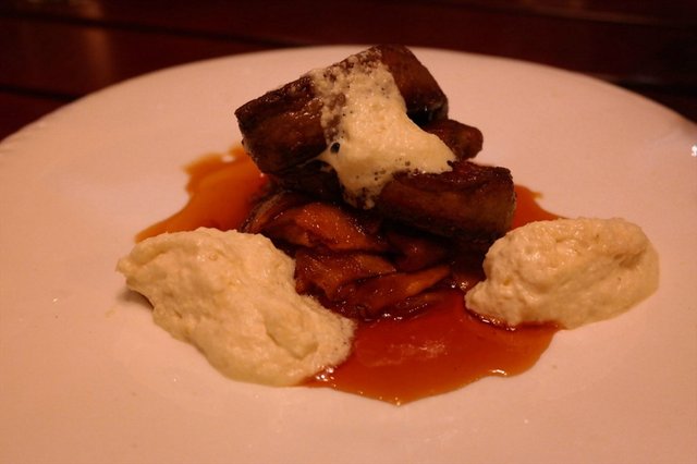 很大两块鹅肝,鹅肝煎的恰到好处,很嫩,而且一点儿腥味都没有,下面的焦糖苹果也非常好吃,因为我爱吃甜食,所以这一款对于我来说很适合