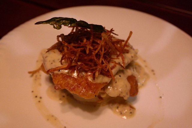 舌鳎鱼后来百度了下了解到就是大鳎目鱼,虽然吃的时候感觉更像龙利鱼吧,鱼的肉质很厚实,口感鲜美没有鱼刺,下面的土豆软软的,配上奶油,我承认我就是个土豆脑袋