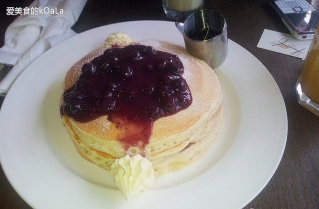是DP推荐的,就是怕失望才特地去点大家都认为好吃的~可最后还是失望,蓝梅酱很不错,不是甜得发腻的那种,很少有我觉得好吃的蓝梅~主要是pancake太一般了,奶味不重,饼也不够细腻,不是我要的那种口感,雪梨的那家口感上更像是湿润的蛋糕,超级无敌棒~而他们家的完全是块饼,里面还有气泡孔~完全不一样!
