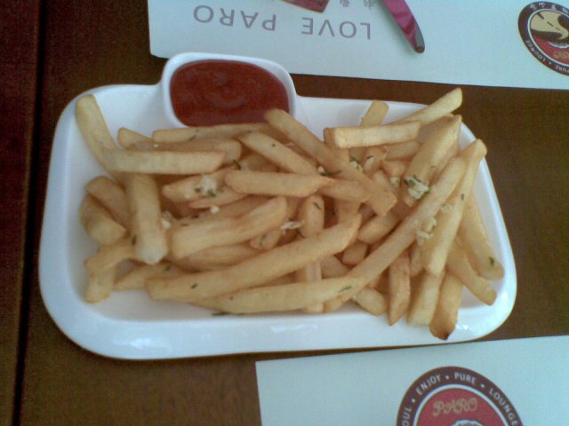 我很喜欢这里的薯条,一端上来就有一股诱人的香味,让我有一种很想直接上手的冲动。我很好奇也就是比别家的放了一点蒜蓉,为什么会有这样与众不同的效果。