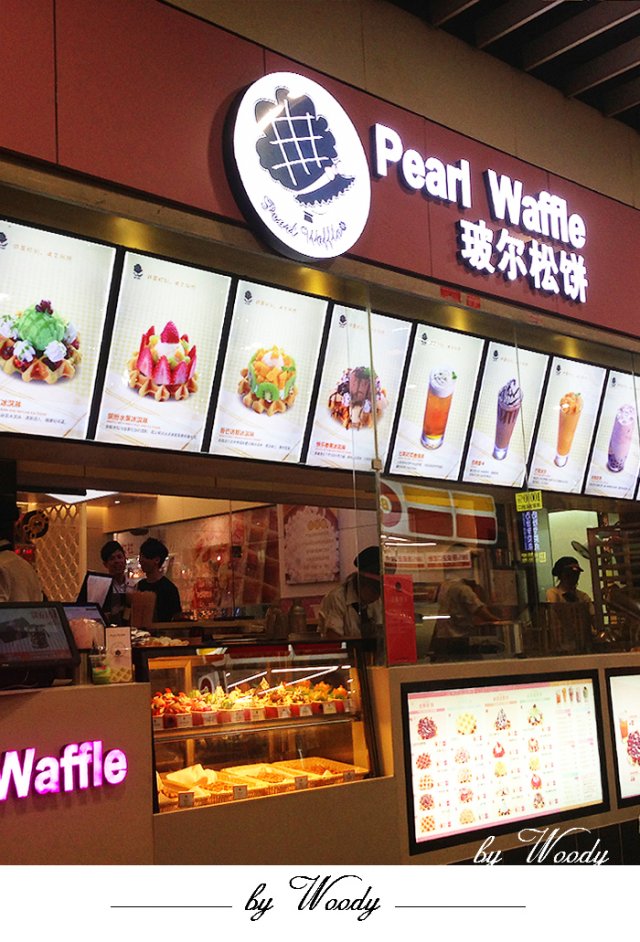 在半开放式窗口可以看到玻尔松饼的制作流程及奶茶等的制作流程。
