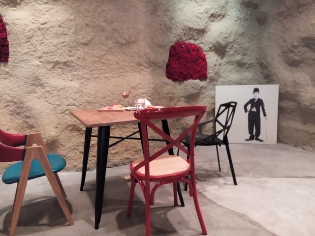 他家山洞似的内部装修环境也很是标新立异,墙上装饰的玫瑰,不知是永生花还是假花。大屏幕里播放着无声的猫和老鼠动画片。