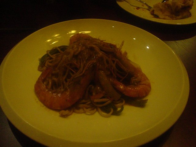 其实到了这家店开始点菜,我才明白这里的特色是啥。28寸的pizza,前所未有的呀。其实pizza真的吃过很多,但28寸有多大,真的没这个概念。因为是准备来主攻pizza的,其他的就没点啥,点了个啥咖喱意面,其实本来也没抱啥期望,但感觉很好吃啊,味道很浓郁U,汁水包裹着面条,算是帮我们先开个胃。