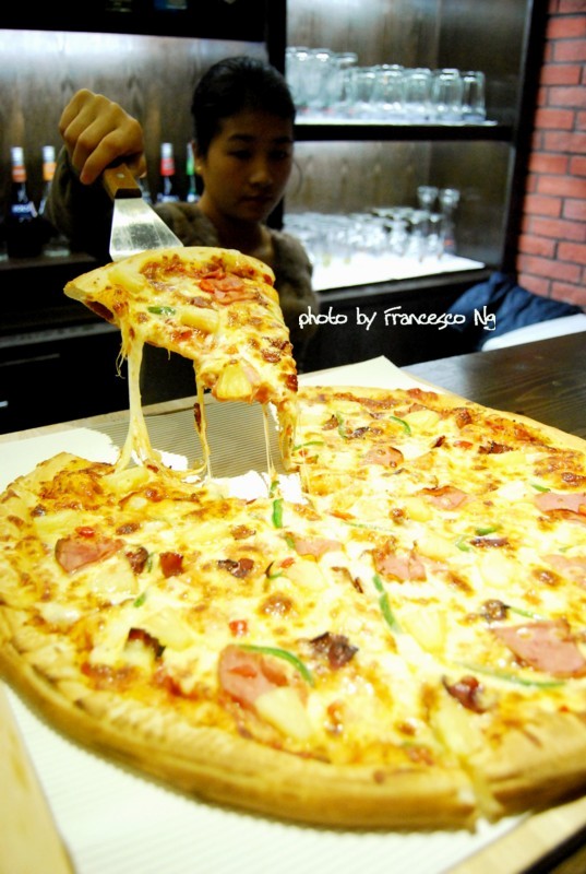 传说中的大比萨,终于拔草了,可惜老婆没来吃,可是这么个大比萨,很难跟她两个人来吃啊,看来又得组织下了,嘿嘿。。。