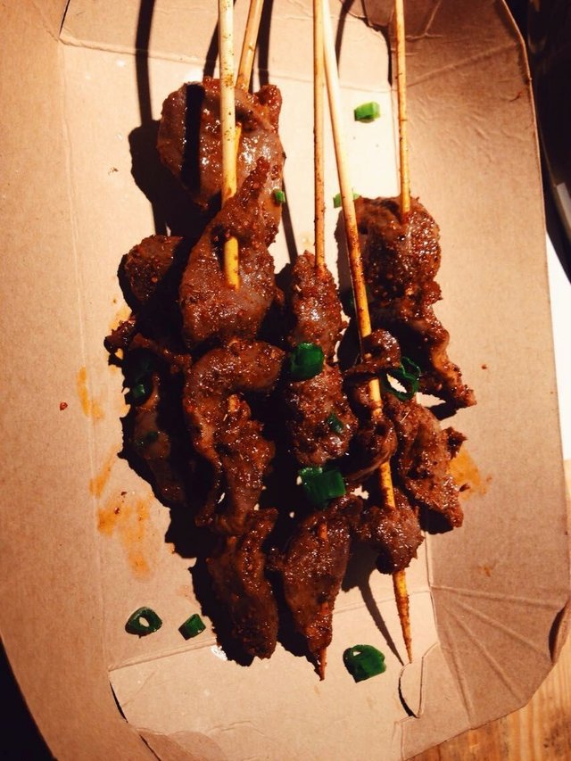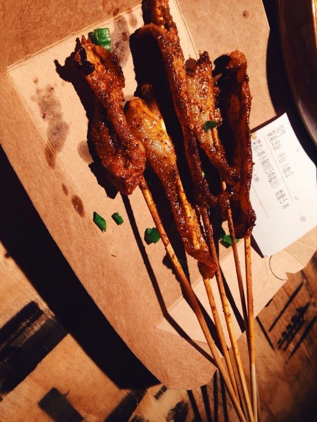 【烤五花肉】3块/串,5串起点。烤的味道可以,肥瘦均匀。【烤郡肝】3块/串,5串起点。感觉比较生,大部分咬不动。
