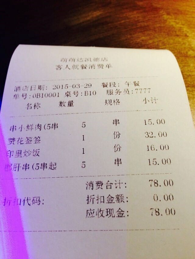 本来还点了十几串烤牛肉和烤鱿鱼的,结果服务员自作聪明要当最强大脑。还好没上,不然我岂不是一天都要拉肚子?