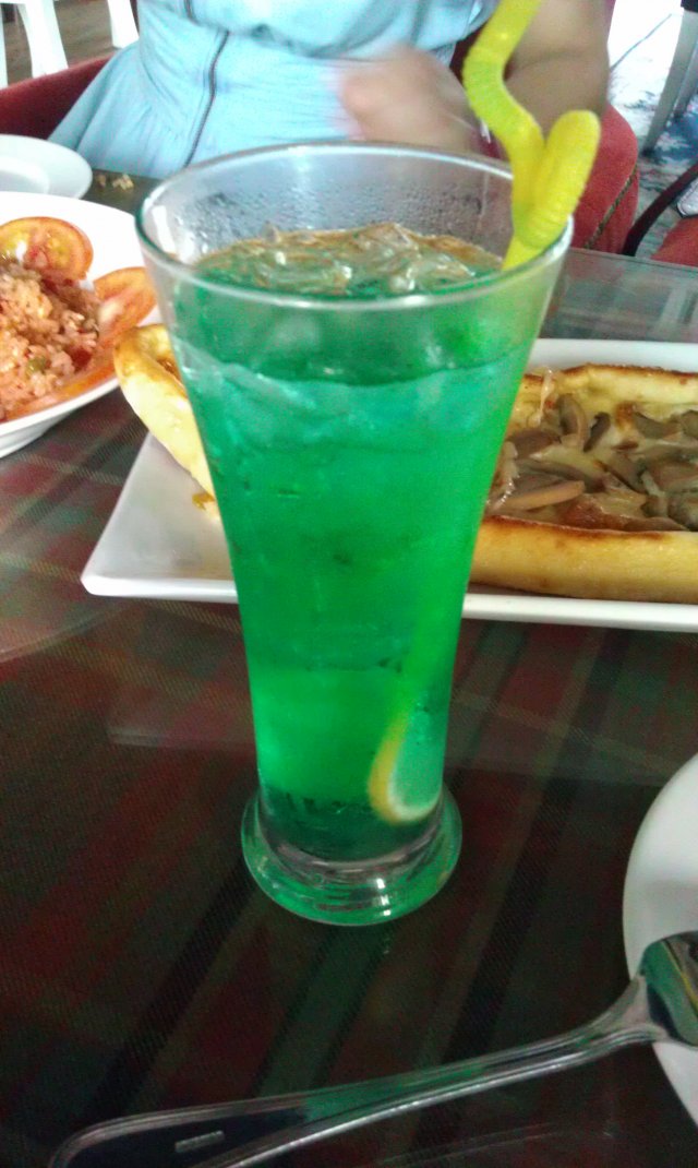 木有酒精的鸡尾酒,在炎炎夏日,喝着有淡淡薄荷味的饮料,好舒服撒。。。