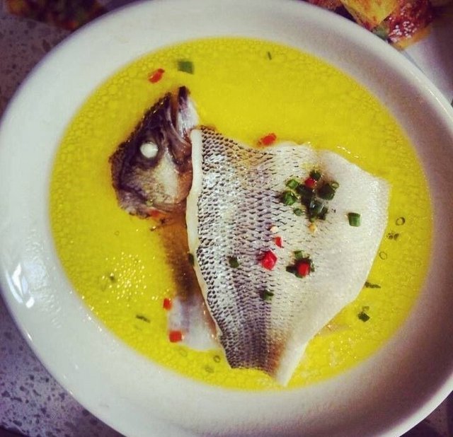 非一般鲈鱼是招牌菜,口味非常清淡,鲈鱼刺少肉质又嫩,用少量盐调味后鱼肉显得鲜甜,汤汁金黄好看,鱼身下面还铺着信鲍菇厚片,吸收汤汁的鲜香口感厚实,味道不错。
