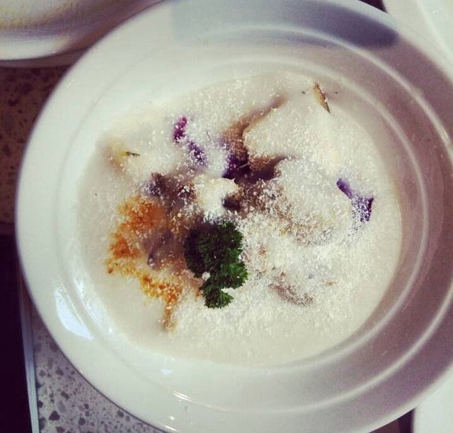 椰香烧焗鸡份量太少,上面浇上很浓的酱汁再撒上密密麻麻的椰丝,都不太能看得出来是鸡肉。鸡肉块很嫩,乳白色浓稠汤汁味道是鲜咸的,下面还有紫薯打底,这一份鸡肉也没有几块就是,好在味道还可以,很喜欢被糊糊的酱汁裹住的鸡肉,吃起来特别鲜。
