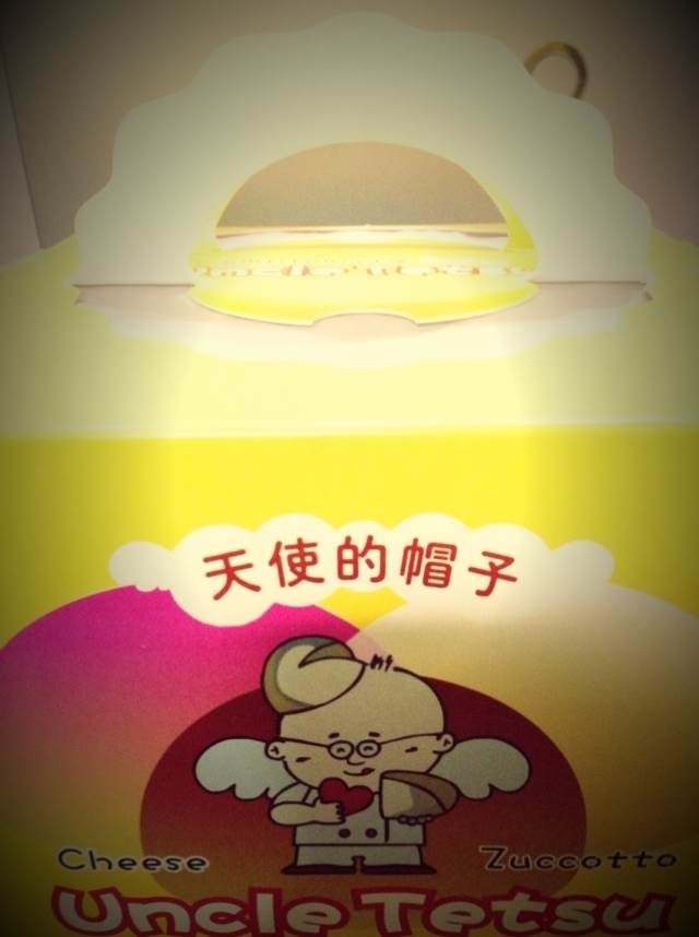 Uncle Tetsu's Cheese Cake 没想到在五角场也开了这家店,路过万达,想进去看看有什么好吃的可以买点回去,正好看见它家醒目的店招牌很是开心,开心的原因是在于没人排队,那个幸福感油然而生,它家的蛋糕都是现场制作的,所以买它家的蛋糕不排队等40分钟左右一般是吃不到的,而且为了让更多人能买到还特别规定每人限购一个.没人排队这种好事肯定不愿意放过了,马上买了个芝士蛋糕,还是新鲜刚刚出炉的,蛋糕表面很光滑,蛋糕中间还有个它家的标志,带眼睛的矮叔叔,满可爱的.蛋糕松软可口,芝士味非常浓郁,店员介绍说回家放冰箱冰一下味道会更好吃.每个39元,价格也属于能接受范围.