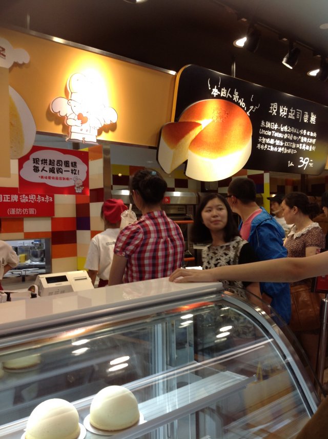这家店的蛋糕在微博上相当火,看到很多店都是排队要一个小时,因为他们家做一次12个,大概十多分钟,这个排队就是这样来的啊,店家果然很精明。上周的时候路过了 美罗城,居然看到开了分店,超级兴奋的,排队绝对不长的,目测下也就十来个人,想想等半个小时以内还是可以的接受的。等了大概一刻钟左右,终于拿到了心心念念的芝士起司蛋糕。比想象中要稍微小点,看上去还行,吃了一口,赶脚难怪喜欢的人那么多,绝对不是噱头,上面的芝士味道不算很浓,但是蛋糕的口感比较绵密和湿润,是我喜欢的奶香味。小店很有人气,毕竟才39元的蛋糕,比外面很多蛋糕店都要便宜了