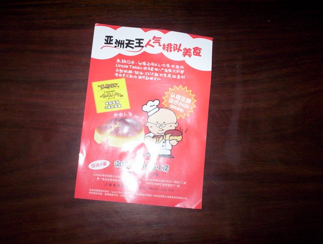 Uncle Tetsu's Cheese Cake luolanlan2205等級32013-09-235 瀏覽 關注 Uncle Tetsu's Cheese Cake是五角场新开的一家店,店面不是很大,生意非常火爆,排队超级吓人,等了1个多小时,他家的现烤现做的,放水烘烤的,非常嫩,一炉6个,大概要40分钟吧。蛋糕蛮可爱的,新鲜出炉很香,非常嫩,有点豆腐的感觉,很湿润。以上食評乃用戶個人意見 , 並不代表OpenRice之觀點。讚好分享Uncle Tetsu's Cheese Cake 徹思叔叔烘焙工房 https://s.openrice.com/KtbT100O6O700檢舉 張貼 評分5味道5環境5服務5衛生5抵食