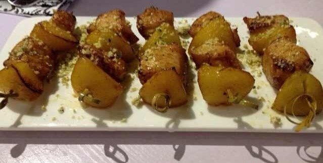 招牌黄桃鸡肉串:好吃的黄桃+香嫩的鸡肉串,组合在一起还真的是蛮有创意的。
