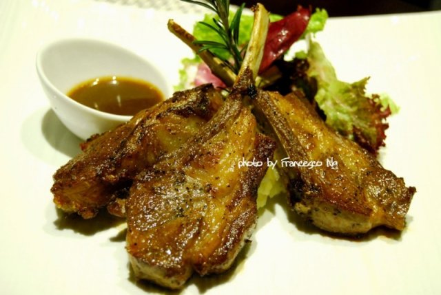 扒烤谷饲新西兰羊排佐迷迭香红酒汁,羊排烤得很够火侯,羊肉的品质也是相当棒,羊味实足。。。