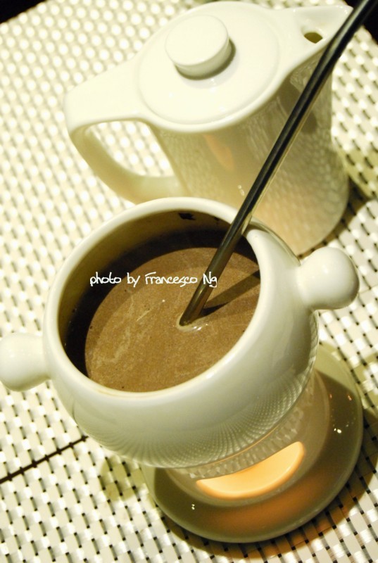招牌巧克力,原以为就是普通的热巧,没想到还挺有名堂,会有一个小壶,里面有一点点牛奶,下面用明火烧着,先倒入巧克力豆,然后慢慢搅拌,再倒入另一个壶里装的牛奶,继续搅拌,一直搅到颜色变深,巧克力豆完全化了,就可以喝了,这种真才实料弄出来的热巧,味道怎么可能不好呢。。。