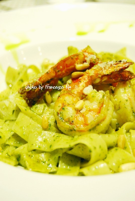罗勒酱大虾意大利面,尝了一口,感觉味道也是相当浓郁的。。。