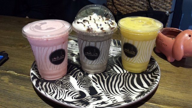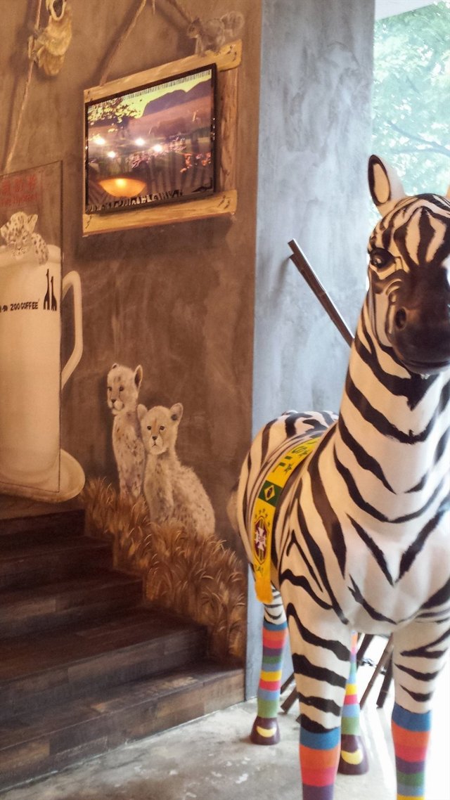 环境:韩国来的咖啡馆风格都有点像,上下两层,有足够的高度给长颈鹿啦~哪里绝对是娃们喜欢的风格,也很容易赚娃们的钱,在收银台旁边还有选长毛绒的橱柜,的确是会做生意!