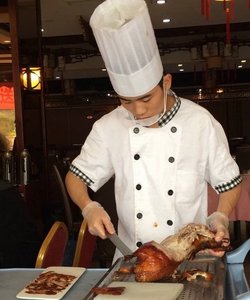 全聚德的北京烤鸭还是相当的地道的,厨师的刀法超级好,把一只完整的鸭子的皮和肉切的超级薄,吃嘴里既能感受到鸭皮的酥香,又能感受到鸭肉的鲜嫩,这都和完美的刀工有着一定的联系,虽然价格会贵出很多,但是一直鸭子片下来的皮肉还是很客观的,可以吃到爽了。…查看更多