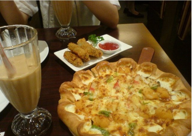 系五月花准备体电影的,但系要等所以就来呢度食也先了。由于中午食饭时间,所以都好多人排队,好彩我地来得早。两个人叫左一个pizza ,咩名我就唔记得了。。。。两杯饮品,一份小吃都已经食唔晒,味道几好,学生卡仲打8折添。环境的话都几好,但系就系人多比较嘈囖,上菜都慢左D。总体满意啦…查看更多