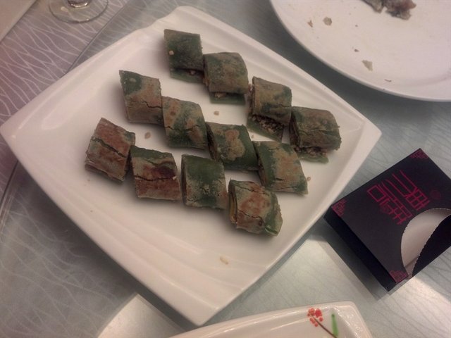 环境高档,价格高档,服务高档,菜式品种多,还是比较值得尝尝的。绿茶薄餐,听到名字还以为是一片片的薄饼,原来是小卷来的,造型倒是蛮独特的,是深绿色的卷成小卷一样。据说这道点心是拿过奖的,但是我也不觉得有什么特别之处。表面口感有点香脆,中间夹有花生和一些水果,但是觉得味道有点苦苦的,应该不是当季的水果。…查看更多