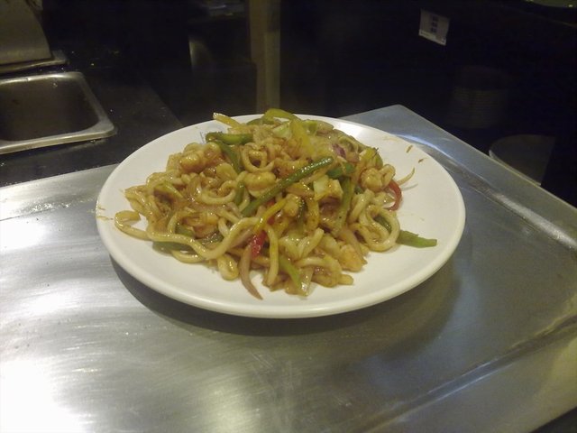 一家面积比较小的法式餐厅,店内的环境一般般,最大卖点是即点即做,服务态度可以,消费价格中等,也有一些不是很贵的团购和套餐,最近分店好像越开越多。月影乌冬面,比较普通的一道面,乌冬口感黏黏的,炒得都比较入味,稍微咸了点,也比较油腻。…查看更多