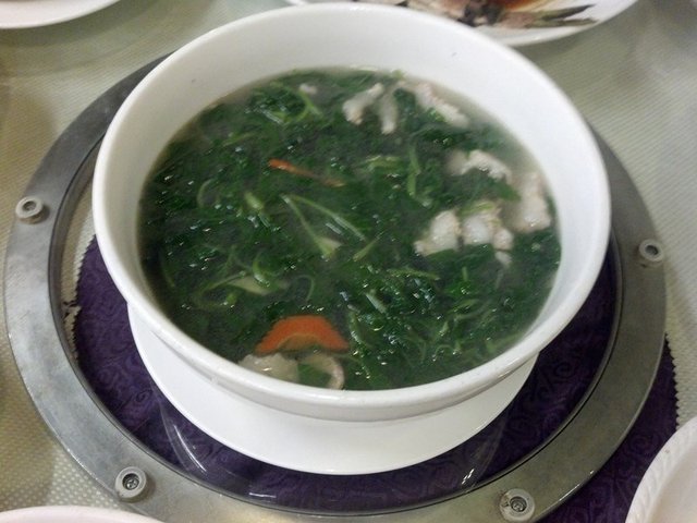 住在这里附近的人都比较喜欢来这家酒楼帮衬,环境算不上很好,而且人气比较旺,所以显得比较吵杂,一家人想要安静的吃饭都比较难。枸杞叶瘦肉汤,比较清淡的一道汤,清淡之余又不失枸杞叶的香味,解渴滋润,瘦肉也比较新鲜嫩滑,口感总体不错。…查看更多