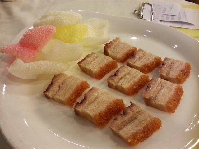 省中医对面的这家家嫂在国庆黄金周台风即将到来的7点,客人寥寥,上座率不上3成,照说在医院对面生意不至于这样惨淡吧,我记得好几个以亲戚命名的餐馆生意都很好。我们首先在门口一眼看到13.8的澳门烧肉,先点了再说。接着就是30多元的章鱼莲藕煲和一个粉丝煲,这里提倡用微信支付,可以送人头算的马蹄糕,还能享受会员的打折,部分炒菜适用。特价的澳门烧肉只有9块,如果是原价30来元说分量真的是很少很少,陪衬几块小时候过年经常吃到的炸虾片,烧肉本身也还不错,只是太薄太少了。莲藕汤有干章鱼有一点花生,连上来的不锈钢盘子都非常家常,不小心还以为是自己家做的。莲藕给的很多,样子像爽口的,其实还是有一点粉粉的口感,比我家买的到底要好一些。最后的虾米粉丝煲,图片上是铁板,煲放在不锈钢盘上上来,摸起来还是非常热的。粉丝样子比较白,没有什么酱汁干逼的感觉。吃起来还是有一点点的锅气,比较碎细碎细的,油亮地来结成一大块,其实味道也还不错。这里的菜普遍30多,微信扫码是不是能优惠点不得而知,因为最后埋单的不是我~~…查看更多