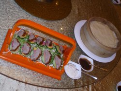 香宫招牌菜(一) 深圳香格里拉大酒店-香宮 2012-03-28这天应邀出席香格里拉香宫招牌菜的品鉴会。先看看五星级酒店的豪华装修吧:走廊的两边,一边是玻璃山水画,一边挂着金色的小鸟;一段20米长的通道走进去就好像与翠谷里飞出来的小鸟打招呼,意趣丛生。据介绍,香宫有十大招牌菜,均物美价宜。当天上桌的有八道招牌菜:火焰脆皮烧肉、聚宝功夫汤、香芒片鸭卷、黑松茸多宝鱼船、金盏雪花牛柳粒、香酥芝士紫薯卷、雀巢甜桃爆虾球、金蒜粉丝蟹煲。每道菜都有自己的独特做法与风味,每道菜都很漂亮,如图:火焰脆皮烧肉,吃的时候有玫瑰露酒燃烧脆皮腩肉,肉质层层分明,无论瘦肉还是肥肉还是脆皮,口感都很好~…查看更多以上食評乃用戶個人意見 , 並不代表OpenRice之觀點。讚好分享香宫招牌菜(一) 深圳香格里拉大酒店-香宮 https://s.openrice.com/KtbT0W0KaG200檢舉 張貼 評分5味道5環境5服務5衛生4抵食推介美食带独立卫生间的十人包间大堂火焰脆皮烧肉火焰脆皮烧肉、聚宝功夫汤、香芒片鸭卷、黑松茸多宝鱼船、金盏雪花牛柳粒、香酥芝士紫薯卷、雀巢甜桃爆虾球用餐日期2012-03-23人均消費¥250相關食評30日內同一位會員在同一間餐廳提交的食評香宫招牌菜(二)