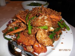 桥底辣蟹 橋底辣蟹 2011-03-17下午去逛时代广场,附近就有桥底辣蟹。于是找之。到时大约有下午3点多了,里面已经没什么食客了。一位老伯正吃着他的工作餐,见我进来招呼我坐下,递上茶水和一小碟花生米。我忙问花生米收不收费?他说:“收的,8块。”我表示收费的花生米我不要,他居然说:“要和不要都要收费的。”还笑眯眯地说这是他们店的规距。没见过这样温柔地强买强卖,只好收下。我点了辣度最轻的蟹,非常好,蟹新鲜而且入味。蟹壳最厚的地方已经被敲裂。只是吃过苏州阳澄湖大闸蟹的人是不会认可其他蟹肉的甜美度的。吃到最后的大蟹钳最满意了,大大一个肉,塞满一嘴。因为吃得仔细,所以费时一个多小时结束我的这一餐,这应该是我在香港吃的最贵的一餐吧。…查看更多+ 1以上食評乃用戶個人意見 , 並不代表OpenRice之觀點。讚好分享桥底辣蟹 橋底辣蟹 https://s.openrice.com/KtbT0gdm000檢舉 張貼 評分5味道4環境4服務4衛生3抵食用餐日期2011-03-12人均消費¥500